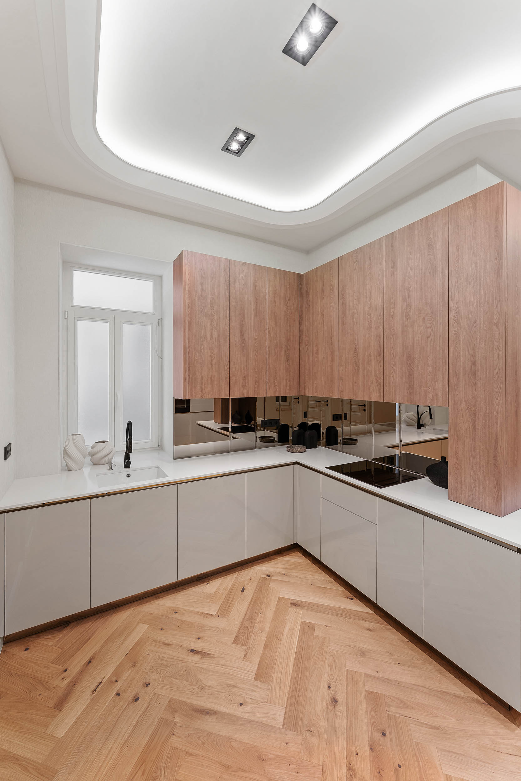 A lakás minden részlete gondosan megtervezett és prémium anyagokkal van kivitelezve. A dizájn Kenway tervei alapján készült, egyedileg gyártott bútorokkal és beltéri ajtókkal, amelyek harmóniában illeszkednek a tér összképéhez. A lakás kiváló hangszigeteléssel rendelkezik, a 3 rétegű nyílászárók cseréje garantálja a maximális komfortot és zajvédelmet.